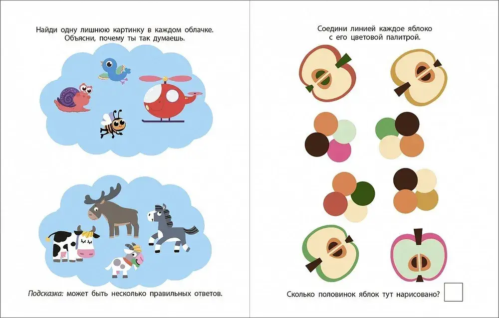 Новое поколение активити для самых маленьких! В книге собрано множество увлекательных заданий, в которых малышу предлагается найти: сходства и отличия, нелепицы, выпавшие пазлы, подходящие цвета и много-много другого. Все задания разбиты на несколько уровней сложности. В конце книги есть ответы.Что особенного в этой книге:- 56 увлекательных заданий;- Страницы с ответами для проверки правильности выполнения;- Стильные и яркие картинки развивают вкус и эстетическое восприятие.Важно знать родителям:- Книга предназначена для детей от 3 лет;- Благодаря этой книге, ребенок сможет выполнить множество заданий на раскрашивание, научится сравнивать, находить лишнее, дорисов