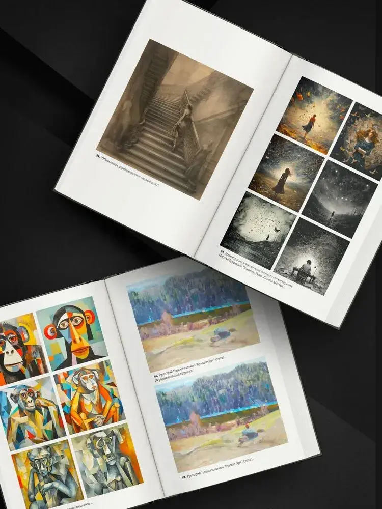 – Иллюстрированное издание-альбом — тексты сочетаются с визуальными примерами, созданными нейросетями, позволяя почувствовать синергию (или диссонанс?) человека и машины.