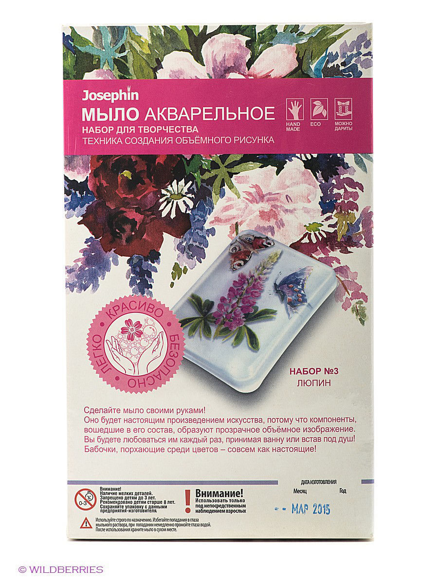 Набор для творчества "Люпин" поможет вашему ребенку без проблем создать красивое акварельное мыло собственными руками. В набор входит: 2 вида мыльной основы, картинка, форма для мыла, инструкция. Мыло будет настоящим произведением искусства, потому что компоненты, вошедшие в его состав, образуют прозрачное объемное изображение. Бабочки, порхающие среди цветов, совсем как настоящие! Вы будете любоваться им каждый раз, принимая ванну или встав под душ!