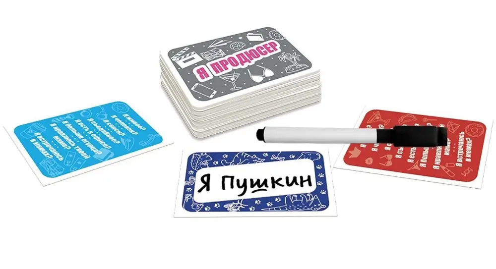 Кстати, в комплекте, помимо 84 карт с заготовленными словами, вы найдёте маркер и 6 многоразовых карточек, на которых вы сможете записать вообще всё что угодно! Например, "внутряки" своей компании, о которых никто, кроме вас не знает. Круто же!