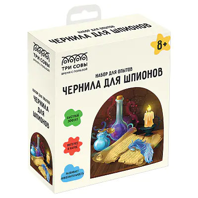 В процессе опыта вы создадите настоящие шпионские чернила: раствор, который будет провялятся только при нагревании. Подробная инструкция с указанием техники безопасности и пошаговыми действиями входит в состав набора.