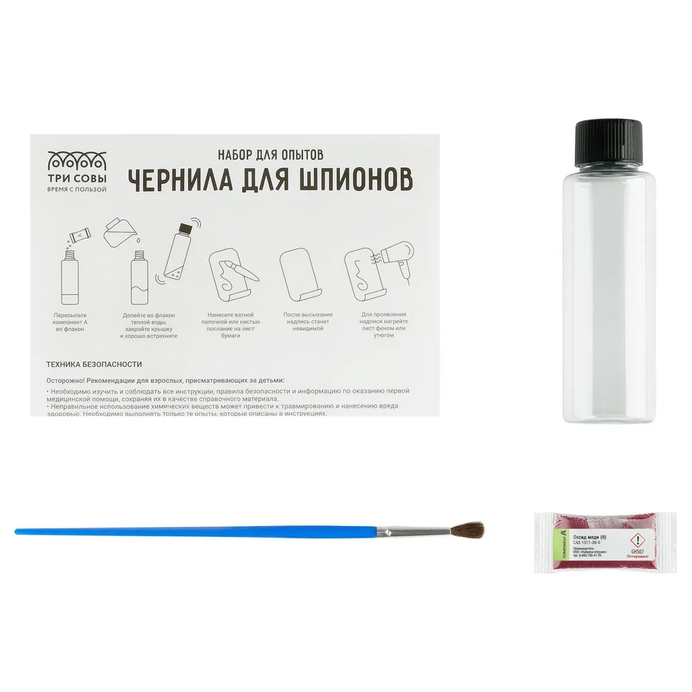 Набор для проведения опытов ТРИ СОВЫ Чернила для шпионов, картонная коробка, европодвес