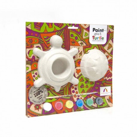 Прекрасный набор для творчества Paint Your Turtle поможет красиво расписать шкатулочку в виде милой черепашки, панцирь которой является крышкой. Сама шкатулка изготовлена из безопасного материала шар-папье (спрессованная бумага). В комплекте можно найти шесть красок, кисть и вставки из гофрокартона.