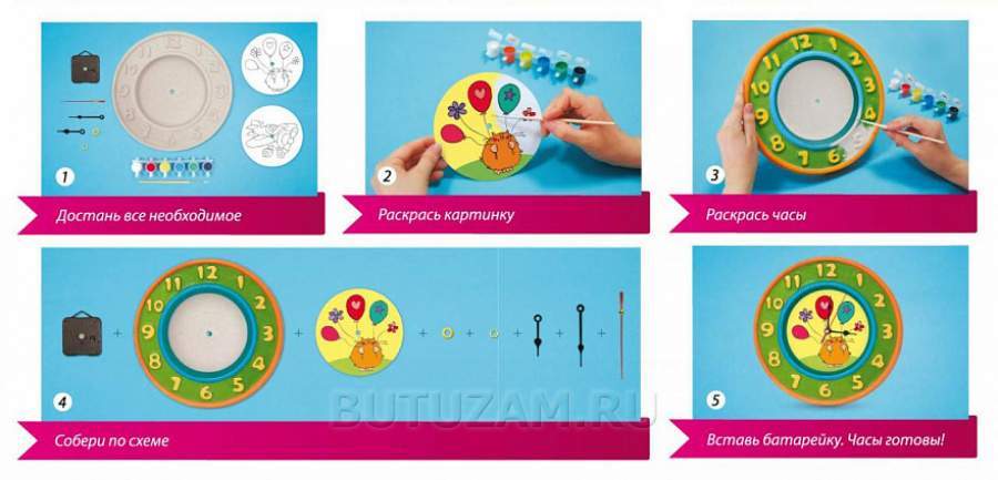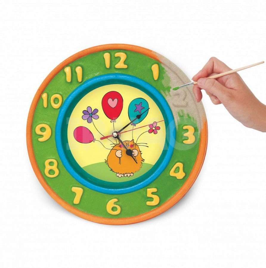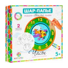 Набор для творчества "Шар-папье" дает ребенку возможность самостоятельно раскрасить настоящие механические часы, а затем повесить их на стену. Для начала необходимо выбрать один из вариантов вставки-раскраски: самолетик или веселый кот с шариками. Затем можно приступать к разукрашиванию. Для этого в наборе имеются краски 6 разных цветов и кисточка. Смешивая разные краски между собой, ребенок может получить новые оттенки цветов. После того, как вставка и заготовка раскрашены, необходимо объединить их с часовым механизмом и вставить батарейку. Готовые часы можно повесить на стену. Такой необычный и уникальный предмет декора будет радовать ребенка и его родителей каждый день. Творческий набор развивает у ребенка способности к рисованию, конструированию и трехмерному моделированию.
