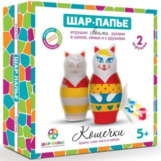 Набор для творчества "Шар-папье" дает ребенку возможность самостоятельно раскрасить и собрать двух объемных кошечек. Для этого в состав набора входит все необходимое. Процесс следует начинать с раскраски заготовок из прессованной бумаги и гофрокартона, используя при этом краски 6-ти цветов и кисточку, входящие в состав набора. Заготовки из гофрокартона дают возможность отдельно прокрасить кошачьи ушки. Смешивая краски между собой, ребенок может получить новые оттенки цветов для раскраски своих кошечек. После того, как все детали разукрашены, необходимо склеить их между собой и подождать до полного высыхания. При этом нужно использовать клей и фурнитуру, которые также имеются в наборе. В результате ребенок получит две объемные фигурки кошечек собственного изготовления. Набор способствует развитию детского воображения и чувства композиции.