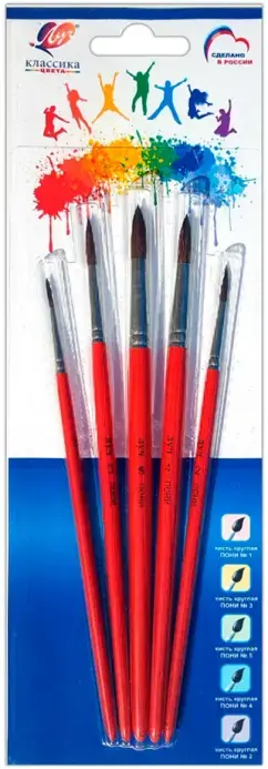 Кисти из волоса пони - самый распространенный вариант для творческих занятий с детьми. Они отлично подойдут для рисования акварелью и гуашью. Мягкий, но плотный волос хорошо впитывает краску и равномерно её отдаёт. Кисти с волосом пони помогут равномерно заполнить фон, нарисовать прямые линии и сделать плавные переходы от тонкой линии и широкой.