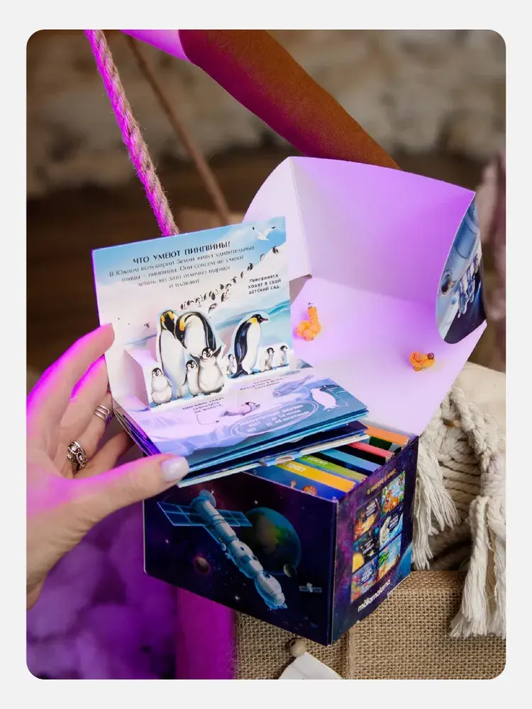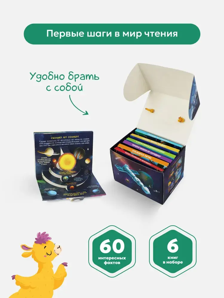 Коллекция карманных POP-UP энциклопедий - это целая мини-библиотека, состоящая из 6 книг с интересными фактами обо всем насвете. 3D развороты создают ощущение дополненной реальности, наличие объемных и открывающихся элементов развивает мелкую моторику и пространственное мышление ребенка. В книгах ребенок познакомится с жителями джунглей, саванны и северного полюса, поплавает с медузами и электрическими скатами, узнает, когда появились динозавры и первобытные люди, а так же отправится в удивительное путешествие по космосу, выучит, что такое солнечная система и сколько в ней планет!