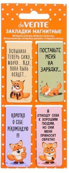 Набор закладок для книг "deVENTE. Funny Fox" магнитных бумажных, 4 шт в блистерной упаковке, размеры