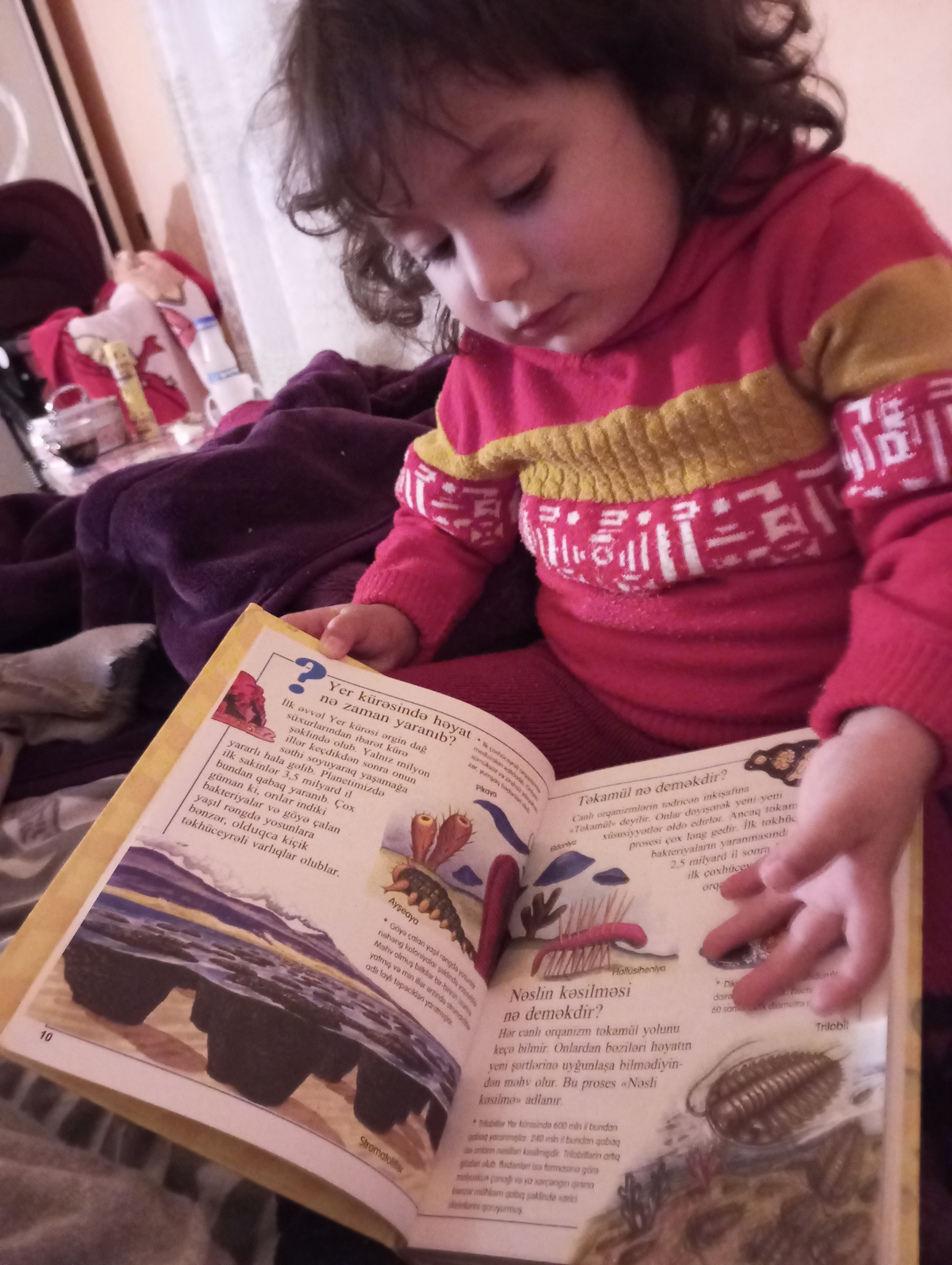 Ensiklopediyanı qızıma almışam. Həm yazılı həmdə maraqlı şəkillərlə anadır kitab. Şəkilli olmağı qızıma daha çox maraqlı gəldi.