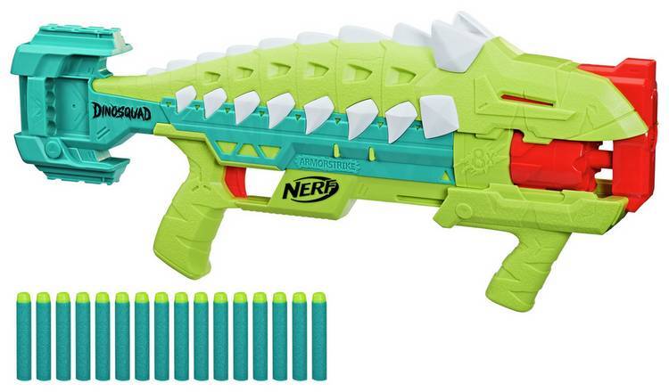 Объединитесь с легендарными динозаврами в составе элитного DinoSquad! Используйте необычайную силу величайших динозавров и отправляйтесь в удивительные приключения! Вступайте в бой с бластером Nerf DinoSquad Armorstrike! Он имеет потрясающий дизайн динозавра, напоминающий динозавра анклиозавра. Запускайте 8 стрел подряд из вращающегося барабана бластера с 8 дротиками, чтобы показать своим целям, что у вас много дино-силы! Накачайте рукоятку, чтобы зарядить бластер, и воспользуйтесь преимуществами его конструкции под стволом, чтобы прицелиться. Бластер включает в себя 16 официальных поролоновых дротиков Nerf Elite — 8 дротиков для зарядки барабана и 8 дротиков для перезарядки. И вы можете держать эти 8 резервных дротиков поблизости, потому что бластер имеет встроенное хранилище для дротиков. Чтобы играть, зарядите барабан, переместите рукоятку назад и вперед, чтобы зарядить бластер, и нажмите на спусковой крючок, чтобы выпустить 1 дротик. Рекомендуется носить очки (не входят в комплект). Батарейки не требуются.
