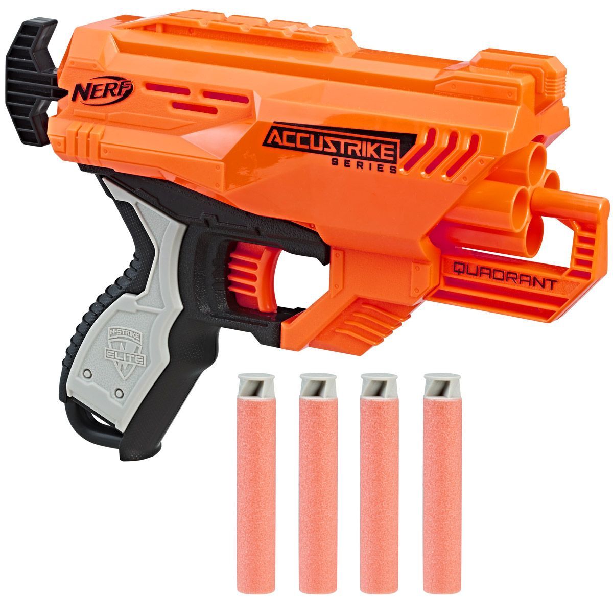 Бластеры линейки ЭЛИТ АККУСТРАЙК созданы для точных выстрелов! Благодаря специальному строению и дизайну стрел АККУСТРАЙК каждый твой выстрел попадёт в цель! Компактный Квадрант можно зарядить сразу четырьмя стрелами!