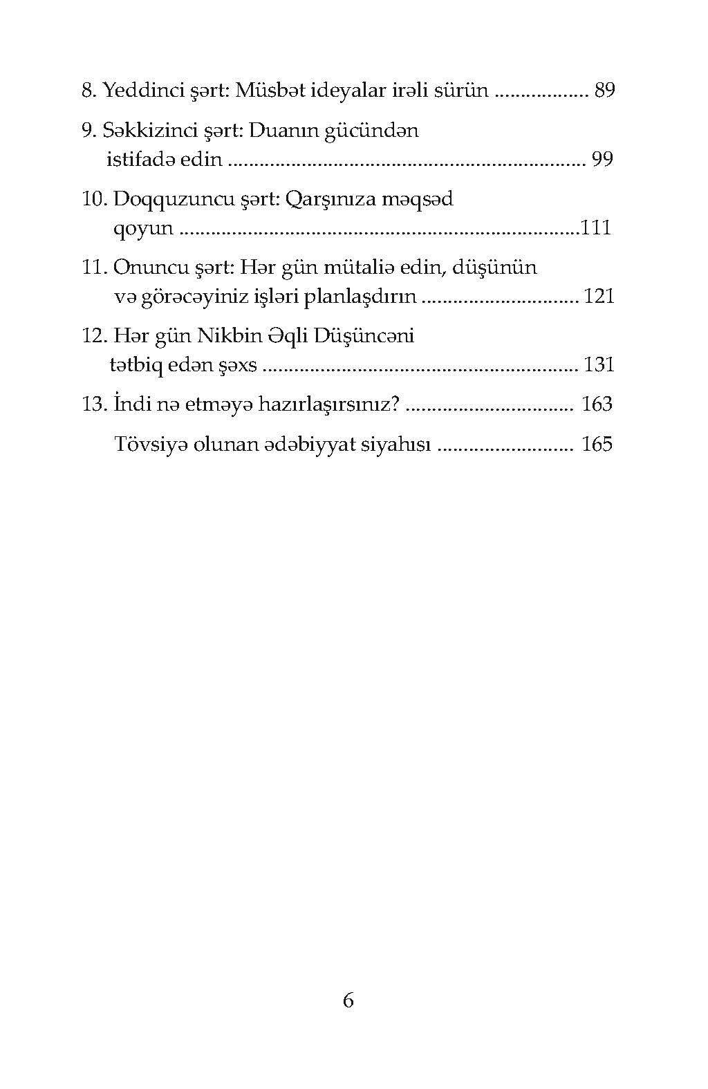 Bu ardıcıl bələdçidə sadə və aydın dildə qeyd olunan sübut olunmuş prinsiplərə əməl edərək arzularınızı gerçəkləşdirə və Nikbin Əqli Düşüncəyə nail ola bilərsiniz.