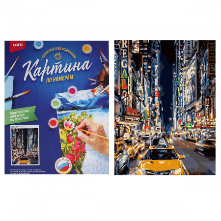 Комплектация набора: основа на картоне с контуром, вспомогательный лист, акриловые краски, кисть, акриловый лак.