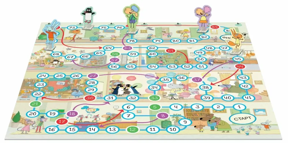 Бросайте кубик, перемещайте фишку и передавайте ход следующему игроку — им тоже хочется первым добраться до финиша!