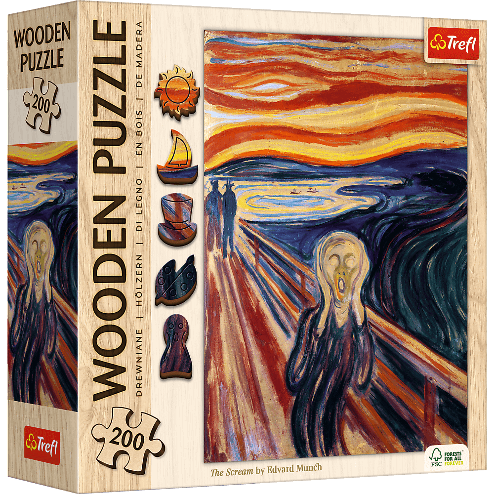 Деревянный пазл из 200 деталей, изображающий всемирно известную картину Эдварда Мунка «Крик» .