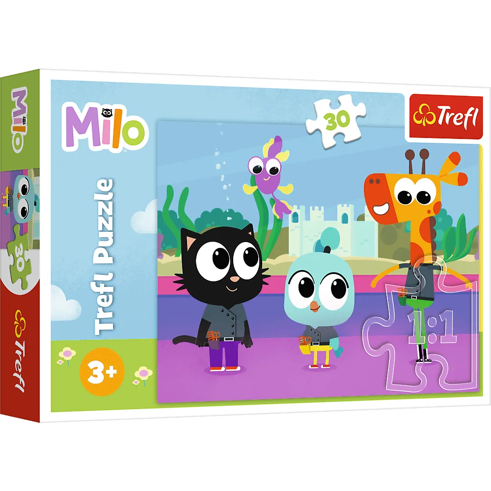 Пазл «Котенок Майло» состоит из 30 деталей и разработан специально для юных поклонников Майло . В собранном виде пазл образует изображение размером 270x200 мм.