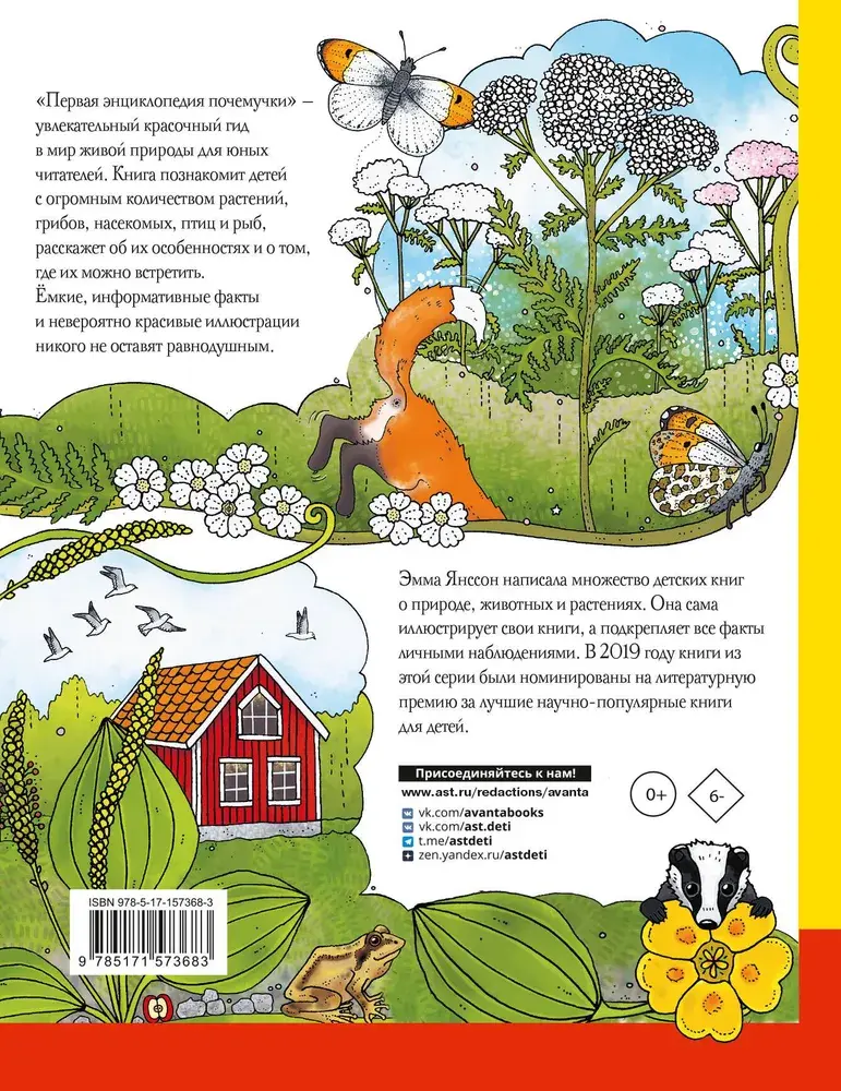 Первая энциклопедия почемучки» — увлекательный красочный гид в мир живой природы для юных читателей. Книга познакомит детей с огромным количеством растений, грибов, насекомых, птиц и рыб, расскажет об их особенностях и о том, где их можно встретить. Ёмкие, информативные факты и невероятно красивые иллюстрации никого не оставят равнодушным.
