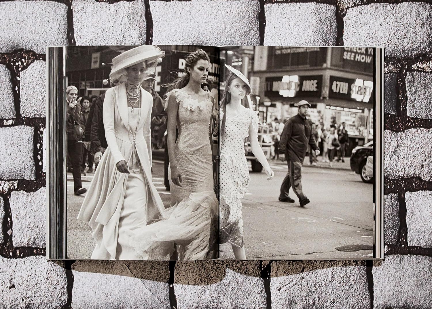 The result is electric. Amid the frenzy of Times Square, Alek Wek glows in the immaculate 1947 Bar suit, the storied ensemble that launched the House of Dior. In snatches of street scenes, models Saskia de Brauw, Karen Elson, and Amber Valletta flit through crowds and scaffolding, are reflected in building façades, and draped in haute couture, from pieces hand-sewn by Christian Dior to more recent designs by Maria Grazia Chiuri. Lindbergh's trademark monochrome and color photographs masterfully highlight the intricacies, silhouettes, and textures of each garment.