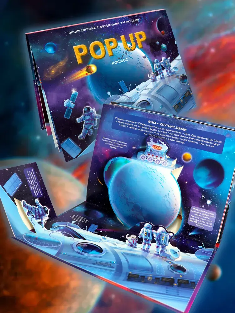 Яркая энциклопедия "Космос" в формате книжки-панорамки с невероятными объемными иллюстрациями. 3D развороты создают ощущение дополненной реальности и настоящего путешествия в космос. На каждом развороте есть откидной клапан-сюрприз, заглянув под который, малыш увидит интересный факт или изображение. Наличие объемных и открывающихся элементов развивает мелкую моторику и пространственное мышление ребенка. Размер обложки: 26х20 см, 5 объемных разворотов. Порадуйте своего ребенка увлекательной энциклопедией-панорамкой с яркими, объемными иллюстрациями! Ребенок узнает много нового, а яркие иллюстрации перенесут его в мир удивительных открытий. Отлично подойдет в подарок для детского сада, школьникам и дошкольникам.