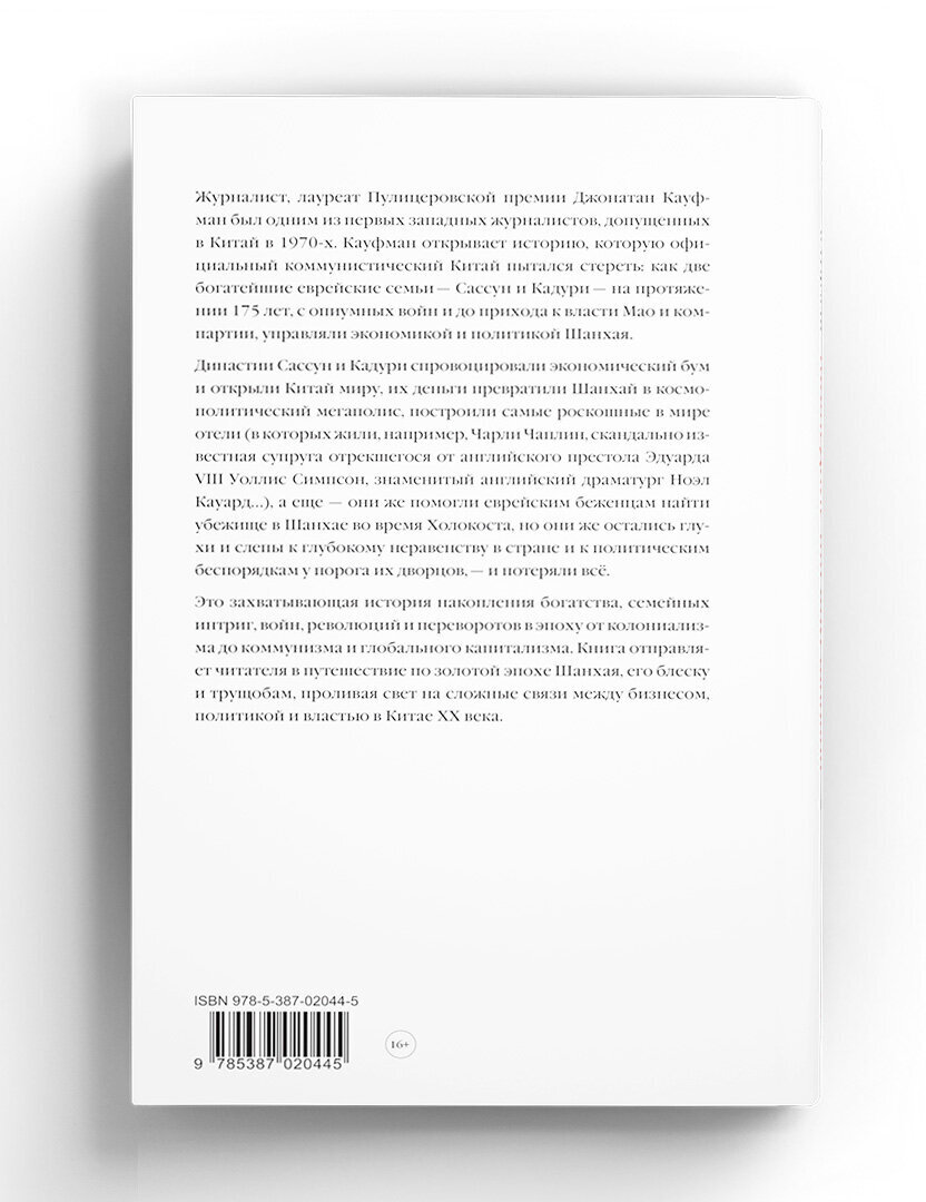Журналист, лауреат Пулицеровской премии Джонатан Кауфман был одним из первых западных журналистов, допущенных в Китай в 1970-х. Кауфман открывает историю, которую официальный коммунистический Китай пытался стереть: как две богатейшие еврейские семьи – Сассун и Кадури – на протяжении более 175 лет, с опиумных войн и до прихода к власти Мао и компартии, управляли экономикой и политикой Шанхая.