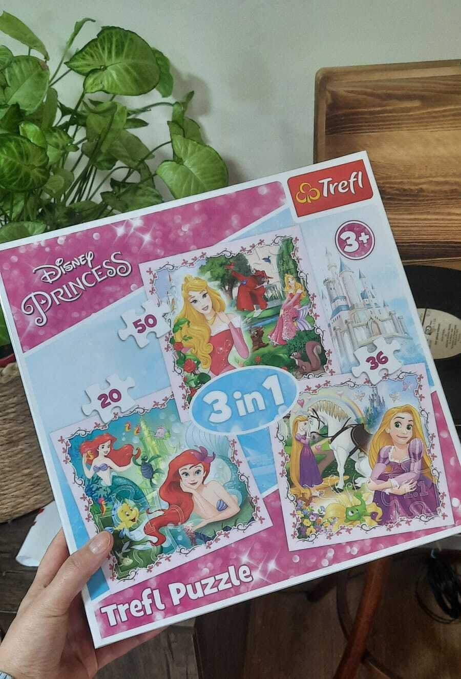 Puzzle - "3in1" - Rapunzel, Aurora and Ariel / Disney Princess Trefl pazlları heç vaxt bitməyən bir maraq, əlvan şəkillər, keyfiyyətli çap, dəqiq kəsiklər, davamlı və keyfiyyətli materiallar təklif edir! Trefl kolleksiyası çox şeydir: detallara ehtirası olanlar üçün yaradılmış zərif bir pazl.