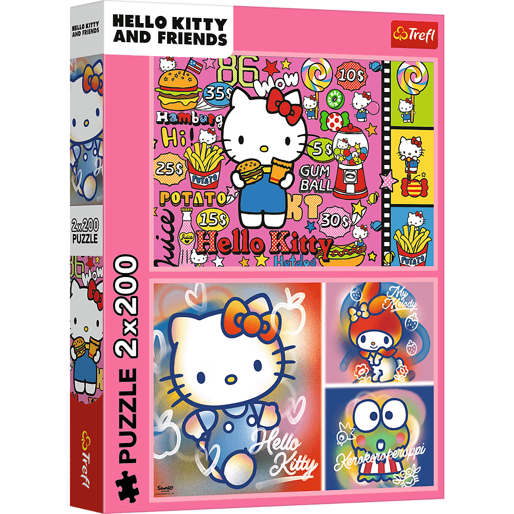 «Hello Kitty and Friends» — это пазл с красочными коллажами, вдохновлённый мультфильмом Hello Kitty. Каждый пазл создаёт картинку размером 410 x 275 мм.