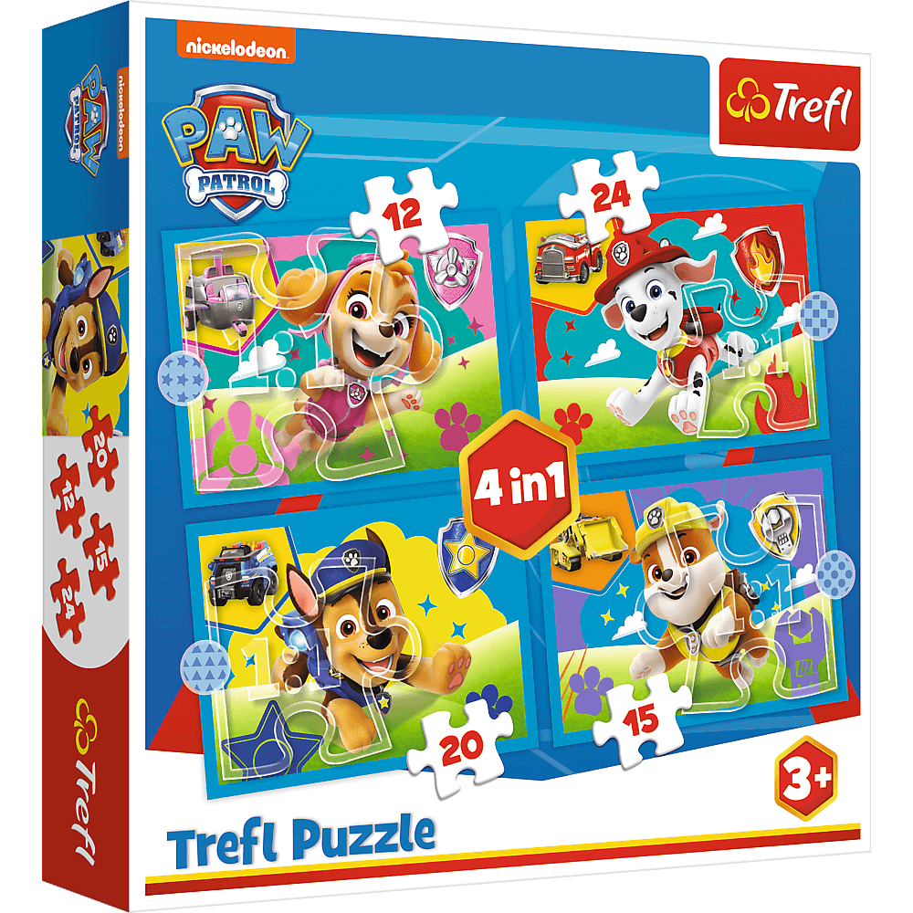 «Бегущие собаки» — это четыре отдельных пазла для детей, разработанных специально для юных поклонников приключений героев Щенячьего патруля. После сборки пазлы образуют четыре разных изображения, самое большое из которых имеет размер 285 x 205 мм. Разнообразное количество деталей позволяет играть как малышам, так и детям постарше.