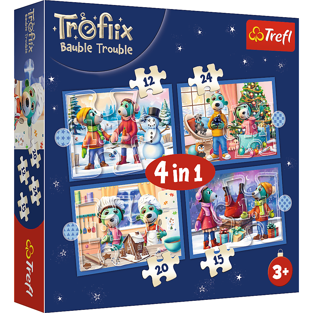 «Снег в Трефлик» — это коллекция из четырёх отдельных пазлов на зимнюю тематику, разработанная для юных поклонников приключений семьи Трефлик . В собранном виде пазлы образуют четыре изображения, самое большое из которых имеет размер 285x205 мм. Разнообразное количество деталей позволяет играть как малышам, так и детям постарше.