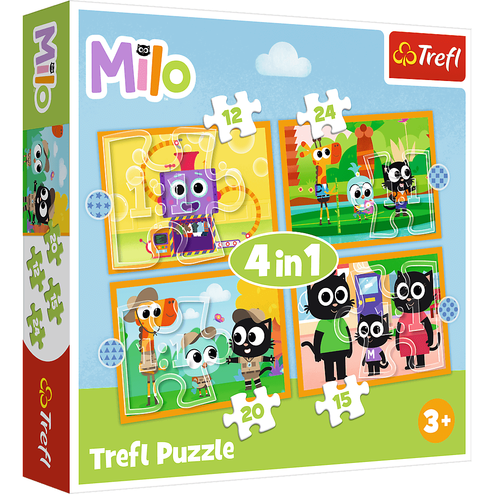 «Знакомьтесь, Майло и его друзья» — это коллекция из четырёх отдельных пазлов для детей, разработанная специально для юных поклонников приключений Майло . После сборки пазлы образуют четыре изображения, самое большое из которых имеет размер 285 x 205 мм. Разнообразное количество деталей позволяет играть как малышам, так и детям постарше.