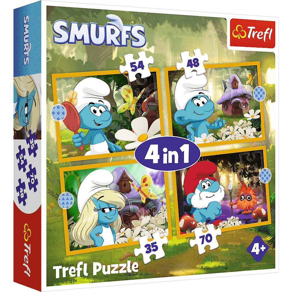 «Жизнь в деревне смурфов» — это четыре отдельных пазла для детей, разработанных специально для юных поклонников приключений смурфов. В собранном виде пазлы образуют изображения размером 285 x 205 мм. Разнообразное количество деталей позволяет играть как малышам, так и детям постарше.