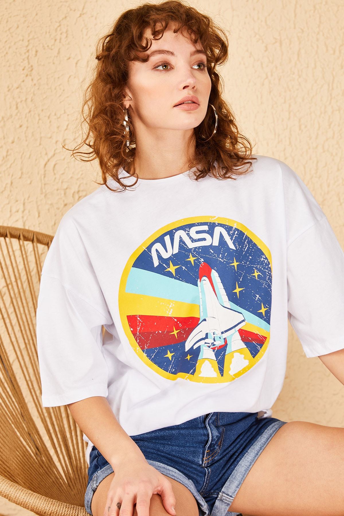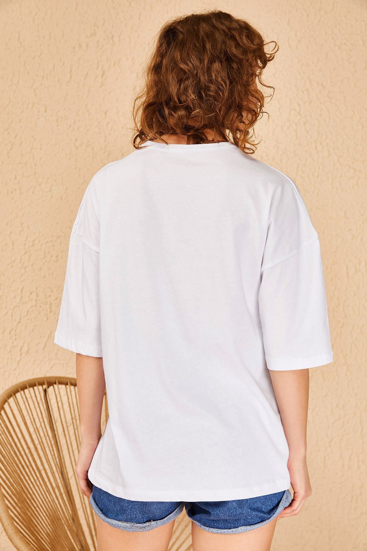 Qadın üçün geniş ölçülü ağ t-shirt 10501025