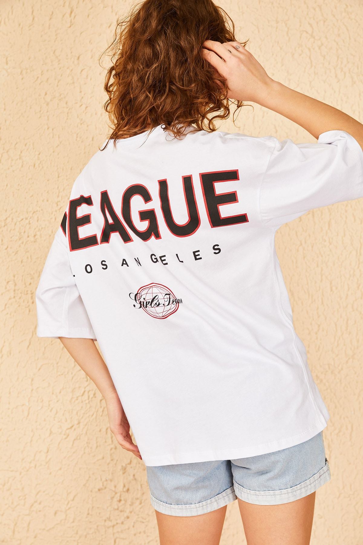 Qadın üçün geniş ölçülü ağ t-shirt League 10501024
