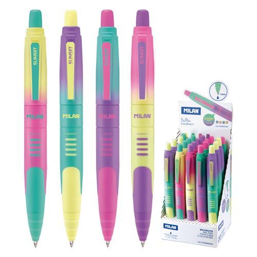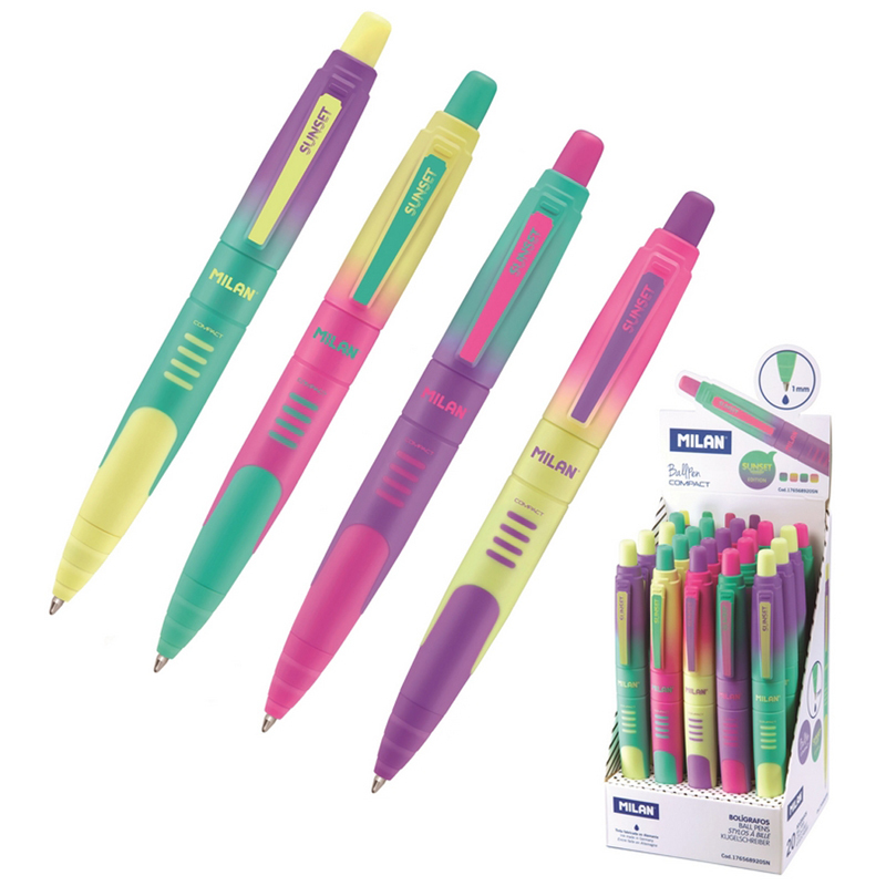Ручка шариковая Milan Compact Sunset выполнена из пластика. Цвет чернил: синий. Приблизительная длина записи 1200 метров. Диаметр шарика: 1 мм. Толщина линии письма: 1 мм. Чернила производства Германии. Ручка автоматическая. Корпус выполнен из пластика. Оригинальный дизайн с плавно переходящими цветами, созданный собственным отделом исследований и разработок Milan. Размеры ручки: 14?1,7 см. Внимание! Данный товар поставляется в разном цвете/дизайне.