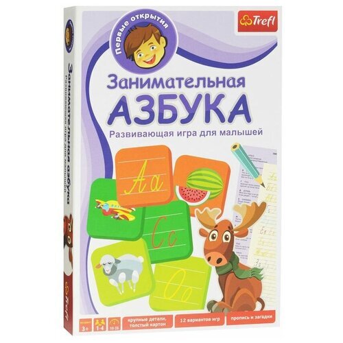 Развивающая игра Trefl "Занимательная Азбука" - это настольная игра для малышей от 3 лет. В этой игре юным первооткрывателям предстоит узнать много нового о буквах, входящих в состав русского алфавита, изучить, как выглядят заглавные и строчные буквы, расширить собственный словарный запас и многое другое. В комплект 30 карточек с буквами, 30 карточек с предметами, лист с загадками и инструкция на русском языке. В эту игру можно играть 12 различными способами, и все они приведены в подробной инструкции, входящей в комплект. Вы сможете отгадывать загадки, изучать буквы, а также использовать прописи. Это простая, но невероятно увлекательная игра, которая гарантирует детям массу позитивных эмоций и заряд хорошего настроения. Она способствует развитию творческого мышления, познавательных навыков, фантазии и внимательности ребенка в веселой игровой форме. Продолжительность игры - 10-25 минут
