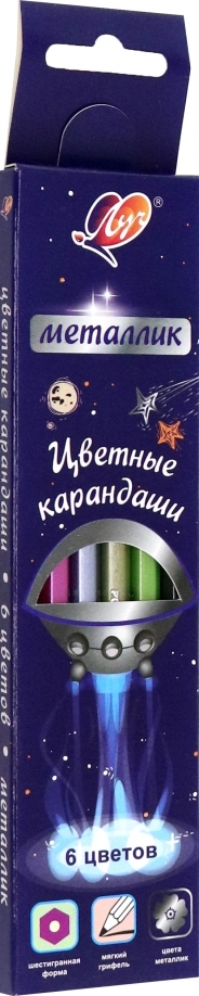 Карандаши деревянные шестигранные ЛУЧ серии "Фантазия" - цвета с эффектом "металлик".