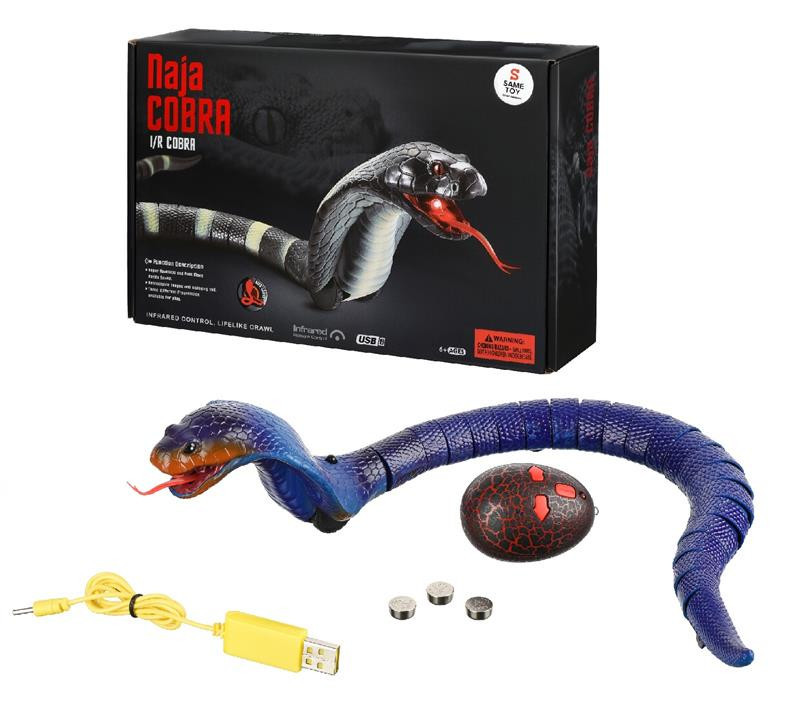 Робот Настоящая кобра от Same Toy - радиоуправляемая кобра, смоделированная по прототипу Naja Cobra (семейство Настоящие кобры). Игрушечная змея передвигается совсем как настоящая и гарантированно увлечет ребенка игрой, дав возможность управлять коброй и шокировать своих друзей.