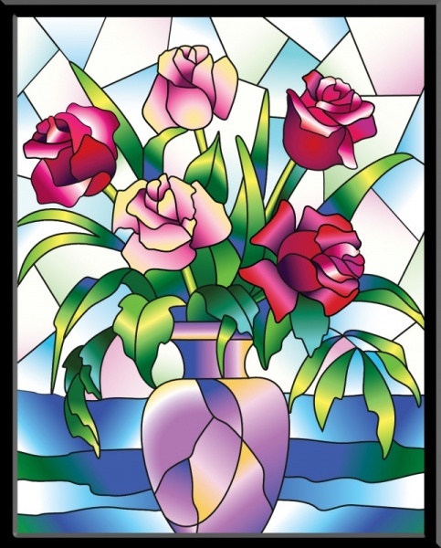 - стекло с нанесенным контуром, обрамленное в багетную раму