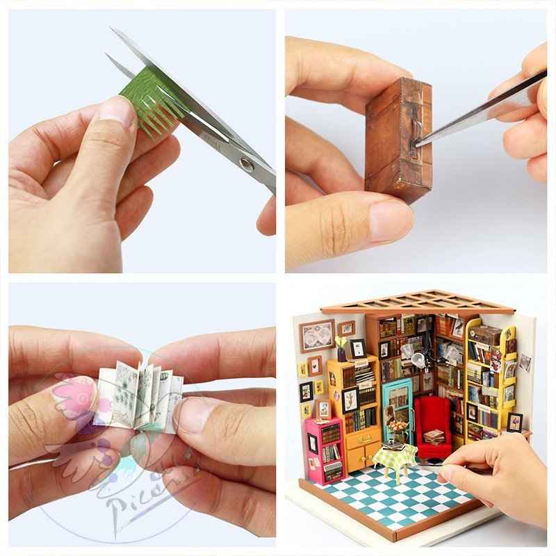 Румбокс — это набор-конструктор для создания миниатюры. С помощью ножниц и клея можно собрать детализированный интерьер комнаты, уютный садик или макет целого здания из деревянных и бумажных составляющих. Изюминка румбоксов - проводка электричества для миниатюрных светильников, работающих от батарейки.