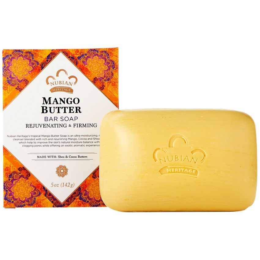Этикетка продукта Мыло Nubian Heritage с маслом манго - это полностью натуральное, не вызывающее раздражения моющее средство, состоящее из чистых растительных масел, эфирных масел и органических трав. Масло манго естественным образом удерживает влагу и обеспечивает защиту окружающей среды, не забивая поры, в то время как масло какао и ши лечит, уменьшая дегенерацию клеток кожи и улучшая эластичность поврежденной кожи. Направления Смочите пену и используйте в ванне и душе.