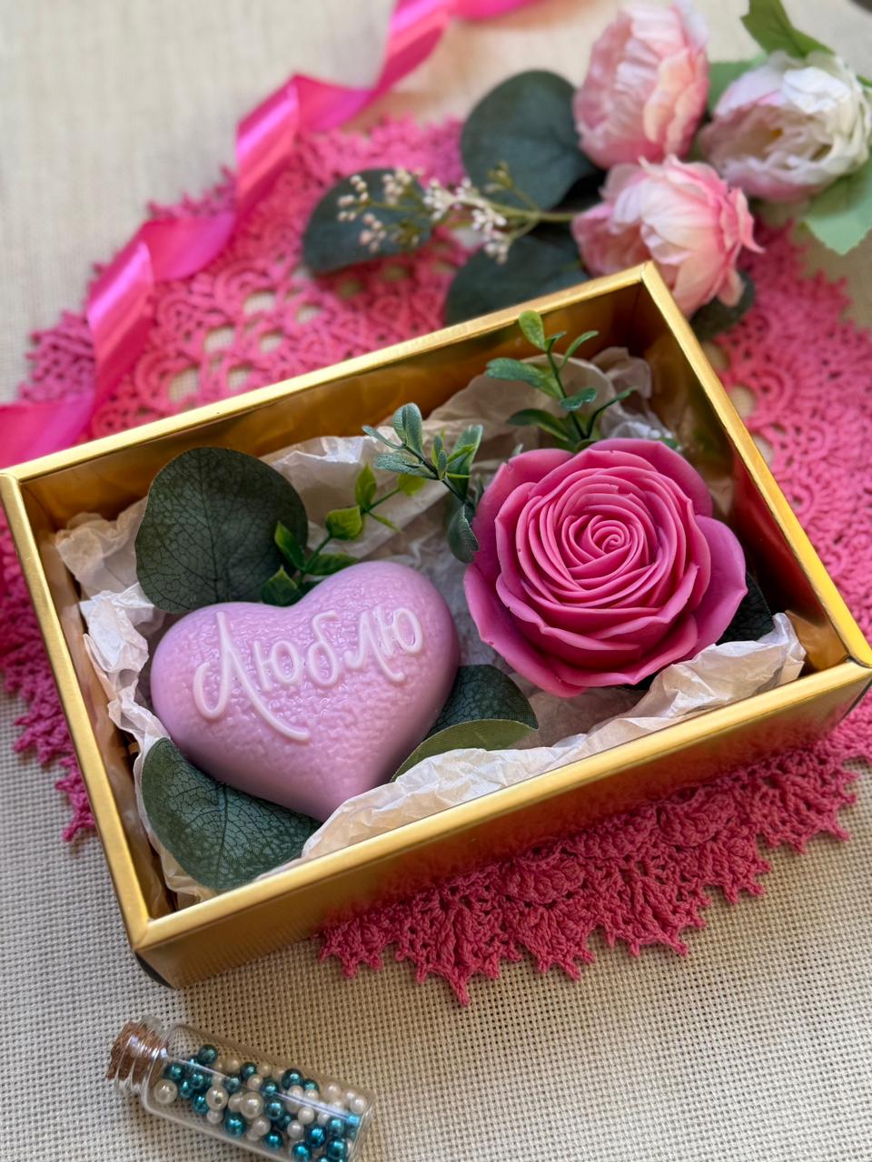 Sabundan Krokuslu ürək və Qızılgül dəsti (qırmızı)