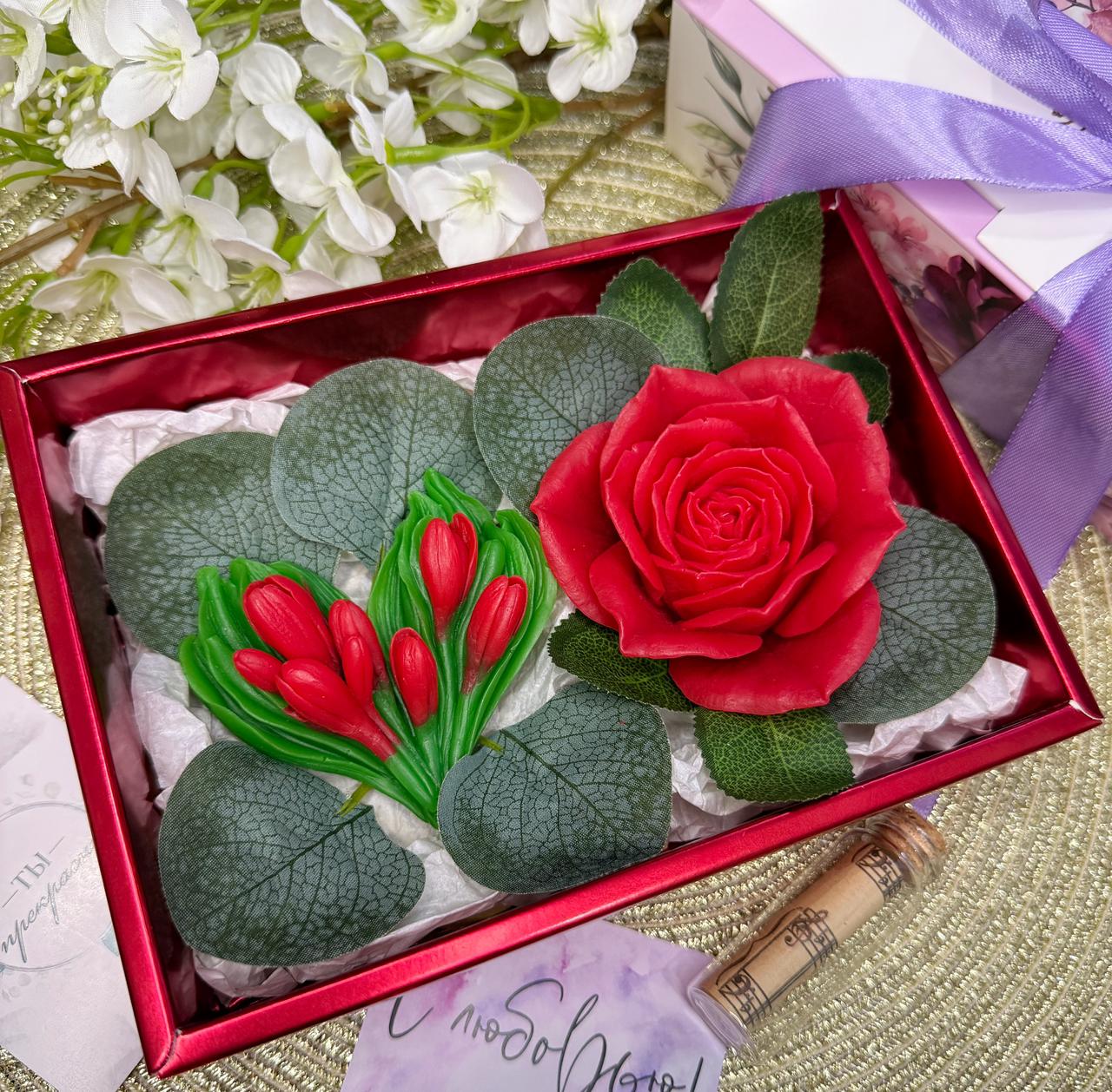 Sabundan Krokuslu ürək və Qızılgül dəsti (qırmızı)