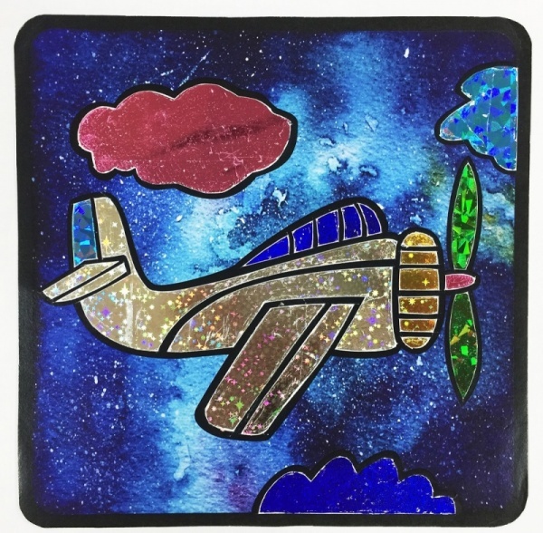 Самолетик в облаках-аппликация цветной фольгой, MH002