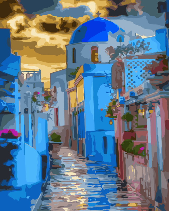 Комплектация набора: - Холст, сделанный из чистого хлопка на подрамнике - Набор акриловых красок,индивидуально разлитый для каждой картины - Набор кистей - Крепеж для подвешивания картины - Контрольный лист