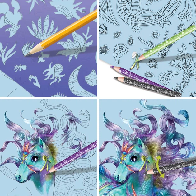 Используйте множество наклеек, трафаретов и техники, чтобы создавать лошадей своей мечты.