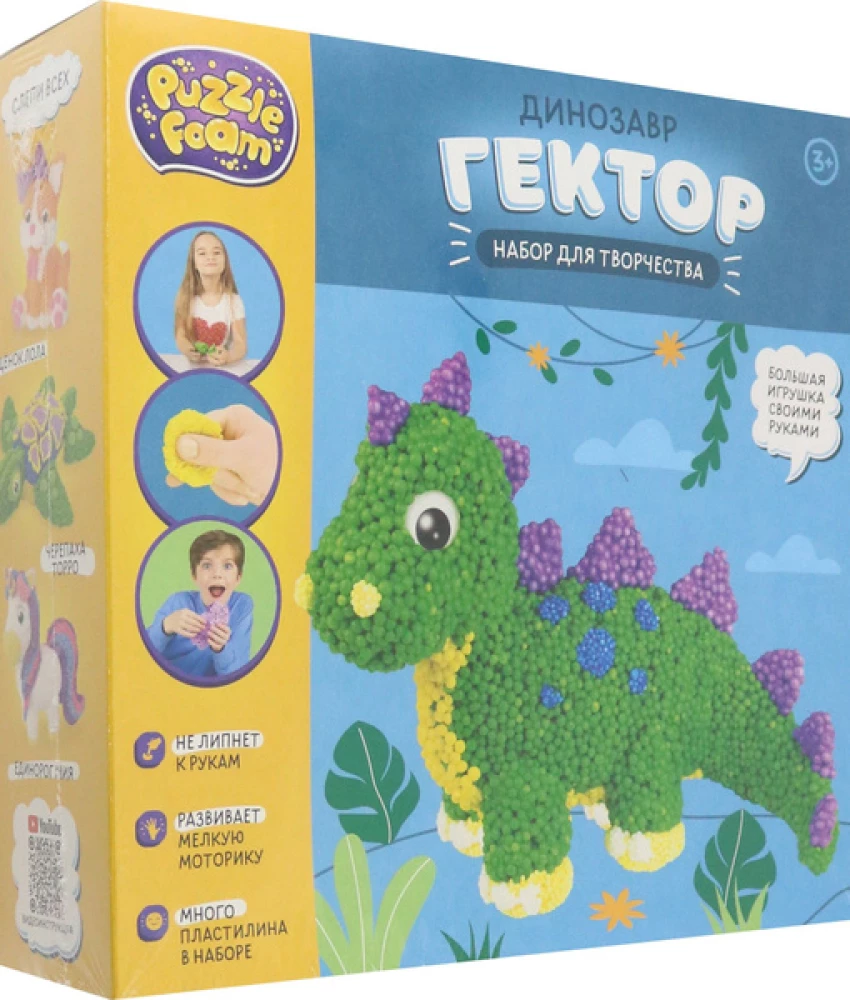 В наборе: крупный шариковый пластилин, мелкий шариковый пластилин, глазки, блестки.
