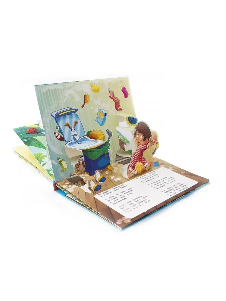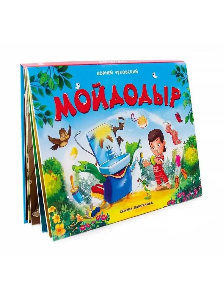 Книжка-панорамка «Мойдодыр» повествует о маленьком мальчике, который не хотел умываться. Что из всего этого вышло ребенок узнает со страниц необычной книги. Все герои сказки, а также окружающие предметы выглядят объемно. Малыш, словно попадает в театр, на сцене которого разворачиваются увлекательные события.