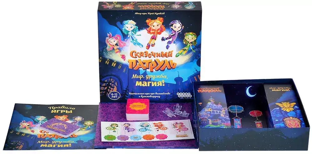 «Сказочный патруль: Мир, дружба, магия!» — это кооперативная настольная игра с атмосферой магии, которая сделает ваше времяпровождение с детьми ещё веселее. Играйте вместе, выполняйте цели и миссии, чтобы доказать, что вы настоящие защитники города. Если удастся выполнить все задания вовремя, победа обязательно будет за вами!