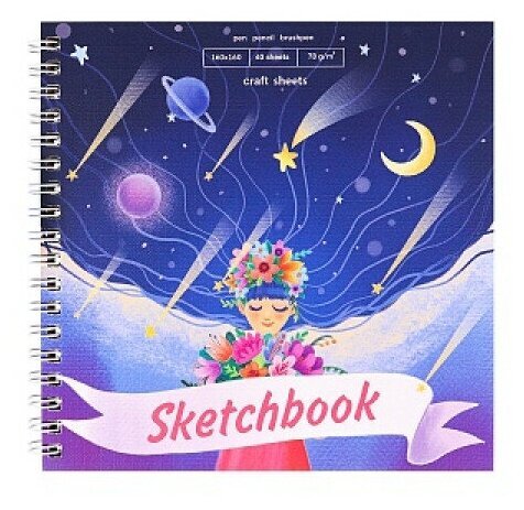 Этот скетчбук является отличным подручным инструментом для художников, дизайнеров и всех творческих людей. Он прекрасно подходит для зарисовок, эскизов и графики. Скетчбук Девочка160х160,мел картон,лён+мат лам,гребень слева,жест подл.,40л,78г(крафт блок) С40-4828