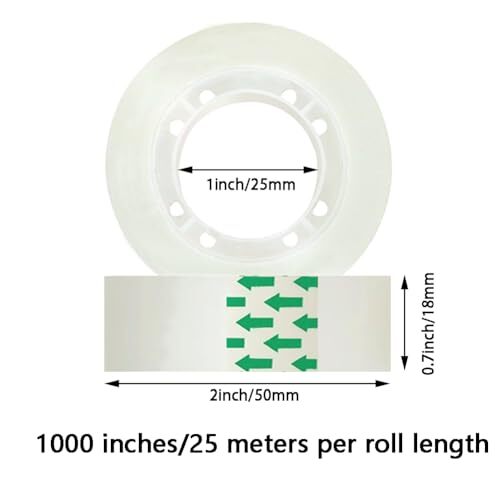 Packaging : 6 rolls clear tape, each roll is 0.75 inches/ 18 mm in width and 1000 inches/ 25 meters in length. Please Note : Make sure your dispenser is suitable for 1 inch core tape before choosing our tape.