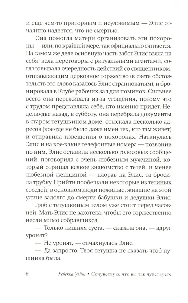 Для Элис и Ханны, святой и грешницы, взросление - это испытание. Мать в воспитании придерживается подхода "разделяй и властвуй", а отец придерживается тактики отсутствия. Еще есть старший брат Майкл, чье неодобрение - сила, с которой нужно считаться. И наконец, есть семейная катастрофа, о которой никогда не говорят, но которая сформировала всех в семье. Став взрослыми, Элис и Ханна продолжают свой путь по дороге разочарований, их жизнь так не похожа на то, что они представляли в детстве. Им так хочется нащупать наконец совсем иной путь - не тот, где сплошь чертополох и колючки, колдобины и препятствия, а тот, где любовь, радость и смех. Но тропа жизни все петляет и петляет меж диковатых пейзажей, пока не становится ясно: ничего не получится, пока они не разберутся в отношениях меж собой и с матерью. И либо все починят, либо сожгут все дотла. Умный и тонкий роман о семье, о близости, о том, что можно сколько угодно искать себя или бежать от себя, но ничего не добьешься, пока не остановишься и не посмотришь в глаза тем, кто всегда был рядом. "Сочувствую, что вы так чувствуете" - трагедия, которая смешнее любой комедии.